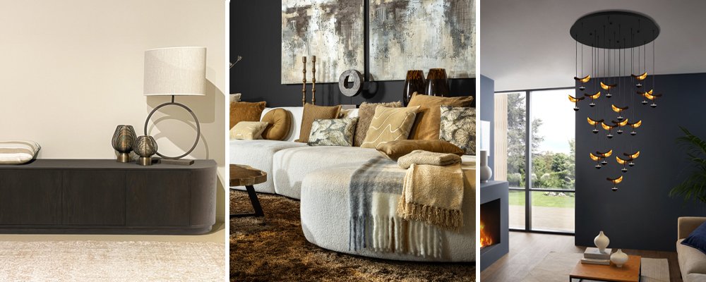 Urban Elegance staat voor moderne luxe met een warme uitstraling. Deze trend combineert strakke lijnen en verfijnde vormen met rijke materialen zoals warm goud, donker hout en subtiele glansaccenten. Donkere accentkleuren zoals antraciet, diepbruin en zwart zorgen voor diepte en contrast, terwijl goudtinten het geheel een zachte, luxe glow geven. Het draait om balans tussen stoer en chic: robuuste elementen worden verzacht met warme verlichting en elegante details. Denk aan matte oppervlakken gecombineerd met metalen accenten en comfortabele stoffen die uitnodigen om te blijven hangen. Urban Elegance is perfect voor wie houdt van een krachtig interieur met een verfijnde twist: modern, warm en stijlvol met een luxe stadsgevoel.